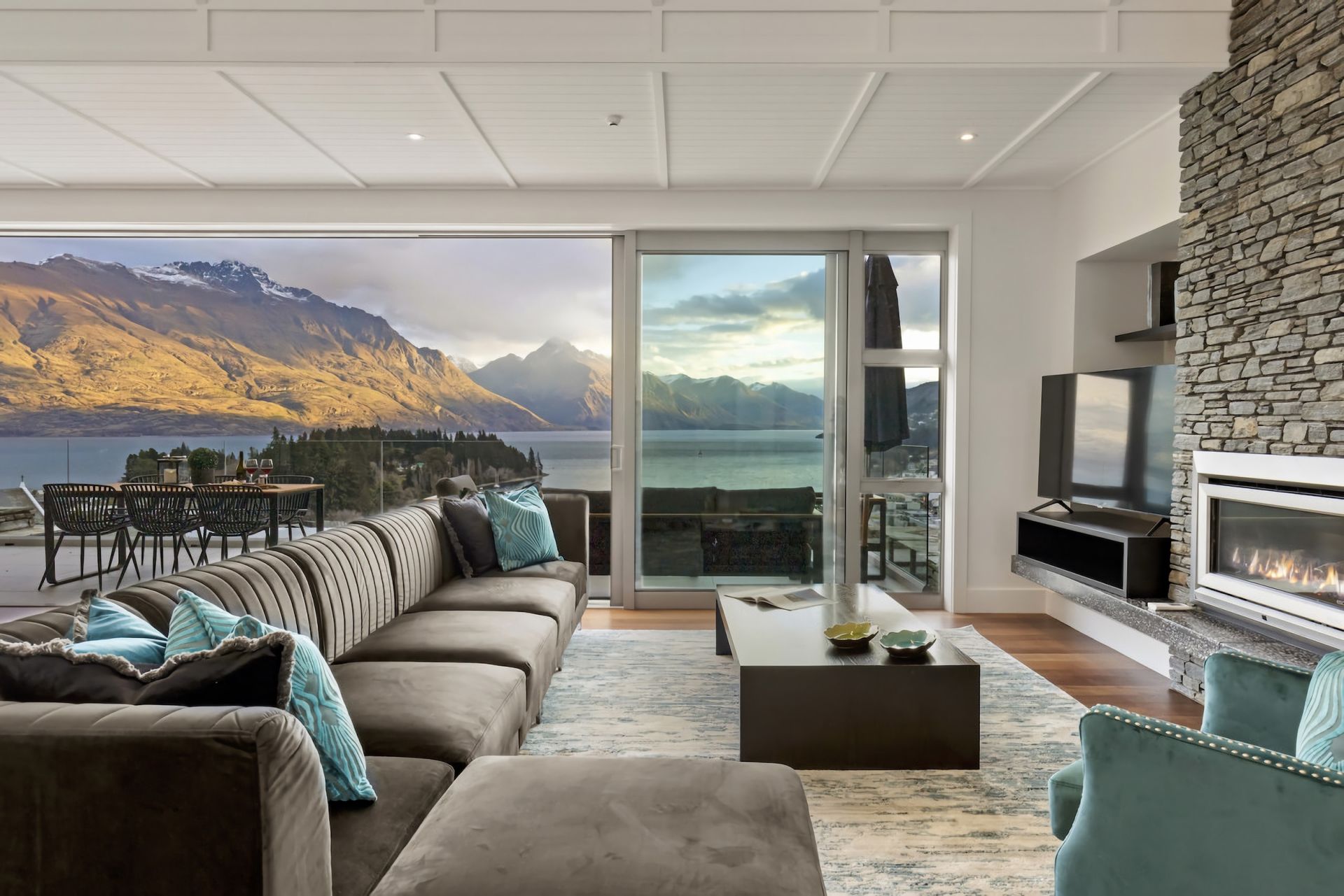 This beautiful three-bedroom penthouse apartment commands magnificent views across Queenstown Bay to the main lake and mountains beyond.