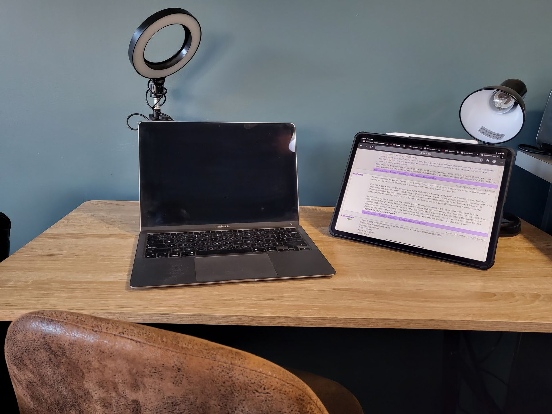 - Office desk, lamp and chair