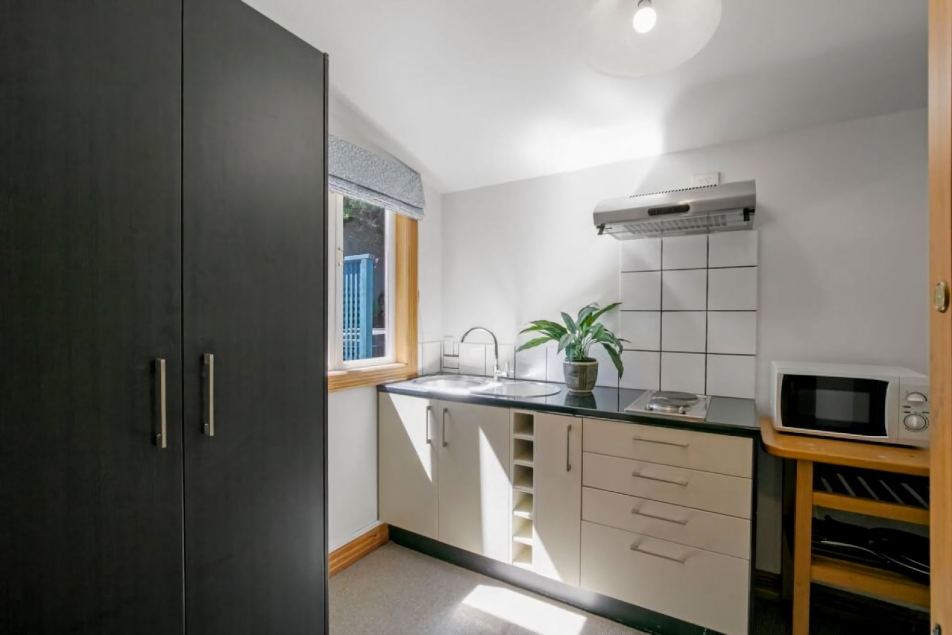 • Kitchenette with, microwave, kettle, small stovetop but no oven.